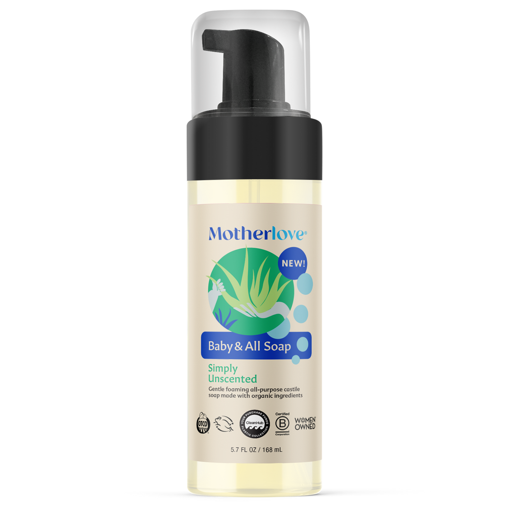 Gentle foaming all-purpose castile soap made with organic ingredients. Parenting can be messy & now getting clean has never been cleaner.
