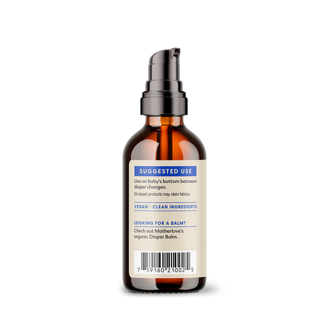 Soothes baby's bottom Infused with organic herbs Cloth diaper safe - free of zinc oxide & petroleum This vegan oil rubs on easily and absorbs quickly, allowing the herbs to do their job without leaving a greasy residue.