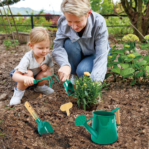 A great set to start your own garden. Prepare the soil with the tools and plant your first plants. Mark the spot to the plant signs. Don´t forget to water them regulary!