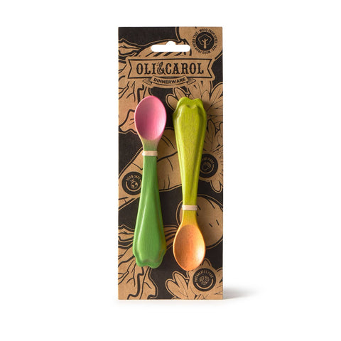 Ramona and Cathy Spoons Set is the coolest baby spoon set around! Perfect for early stages, this set includes two spoons handcrafted from Hevea wood—giving a second life to the trees that once made our rubber toys.